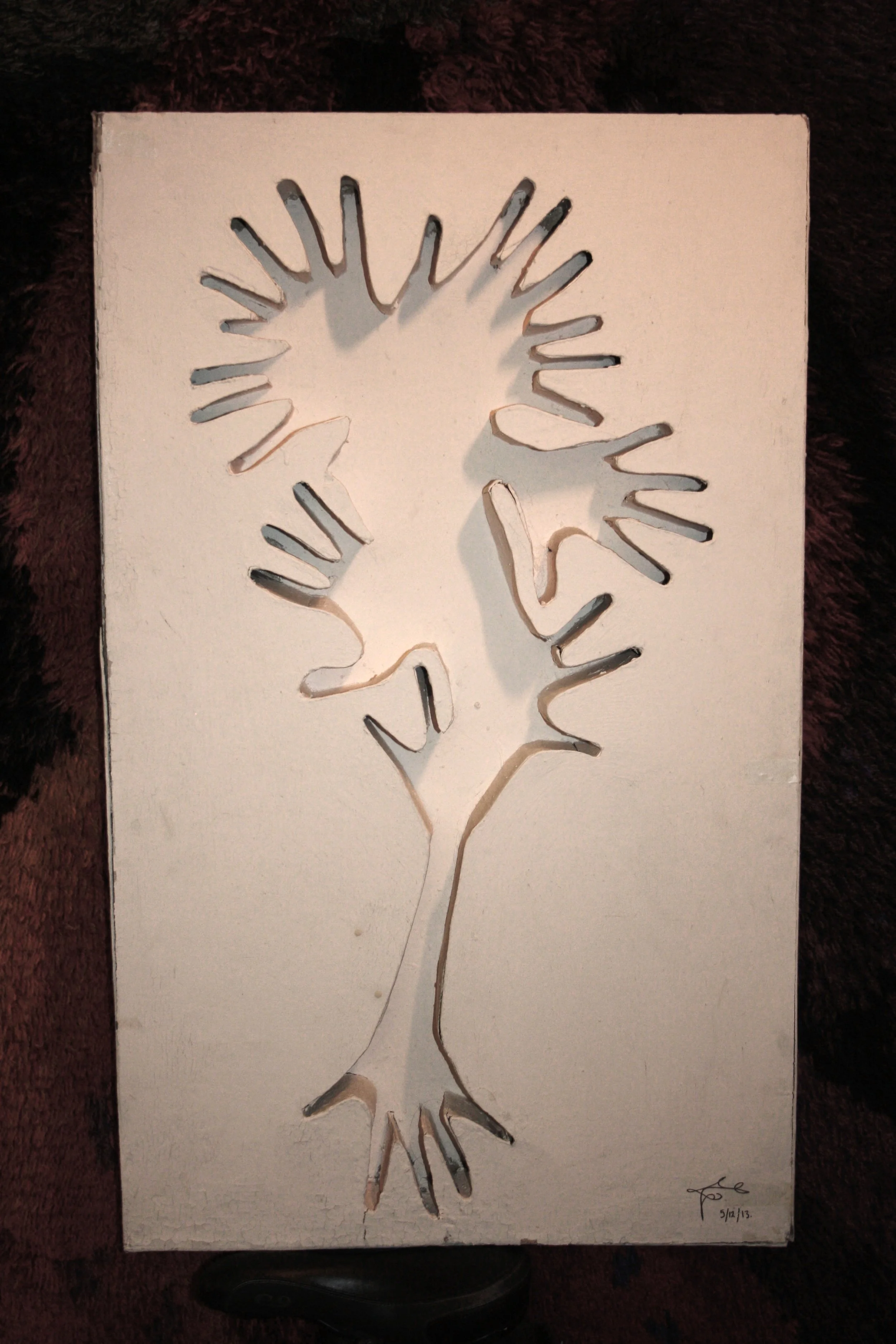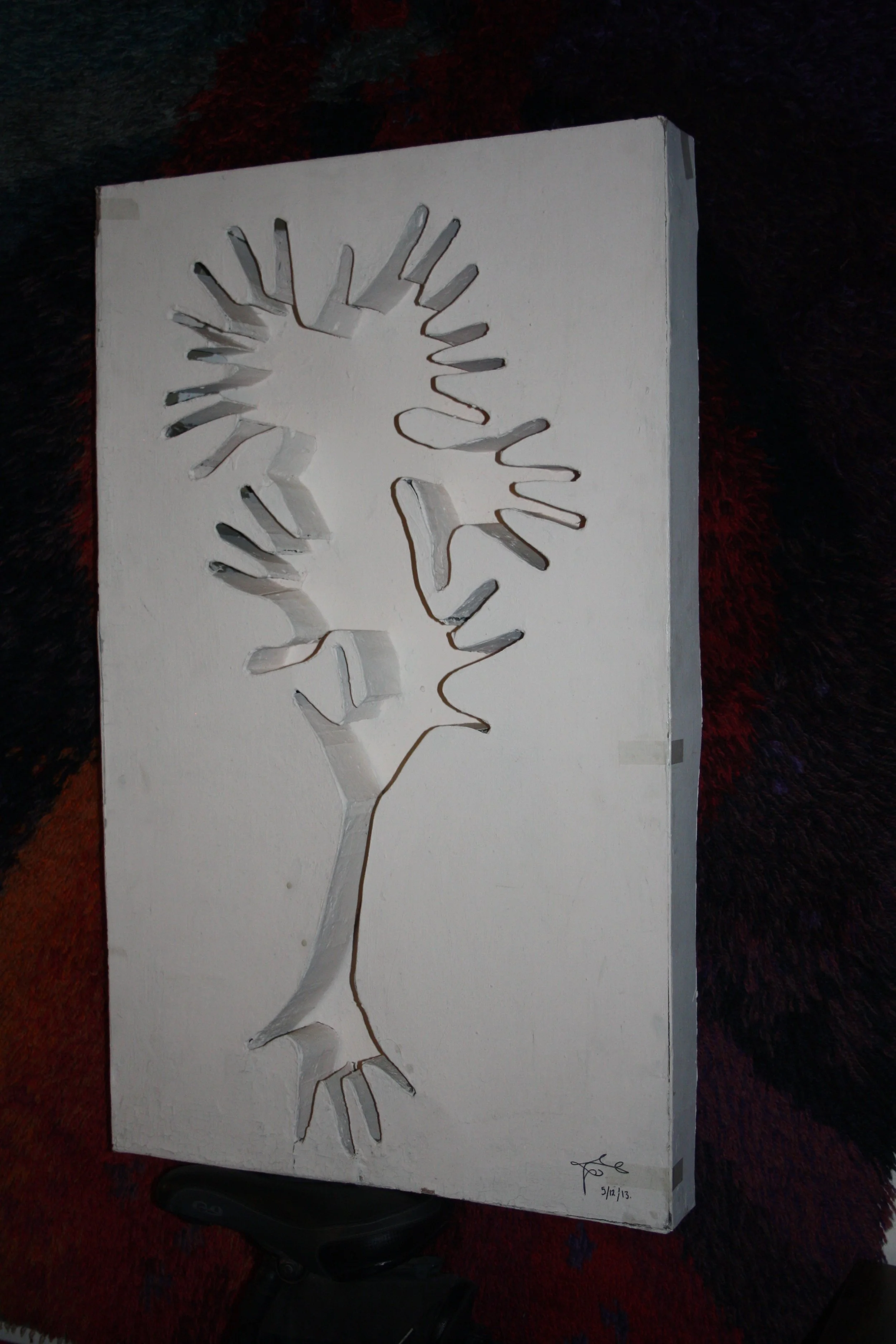My favorite thing about art is the ability for viewers to project their own meaning onto what they are looking at. The hand tree could be ominous or hopeful, depending on the lighting. I spent the majority of the time making it looking at it in the horizontal position, imagining a cavernous maze, whose shape is not clear up close but only far away.